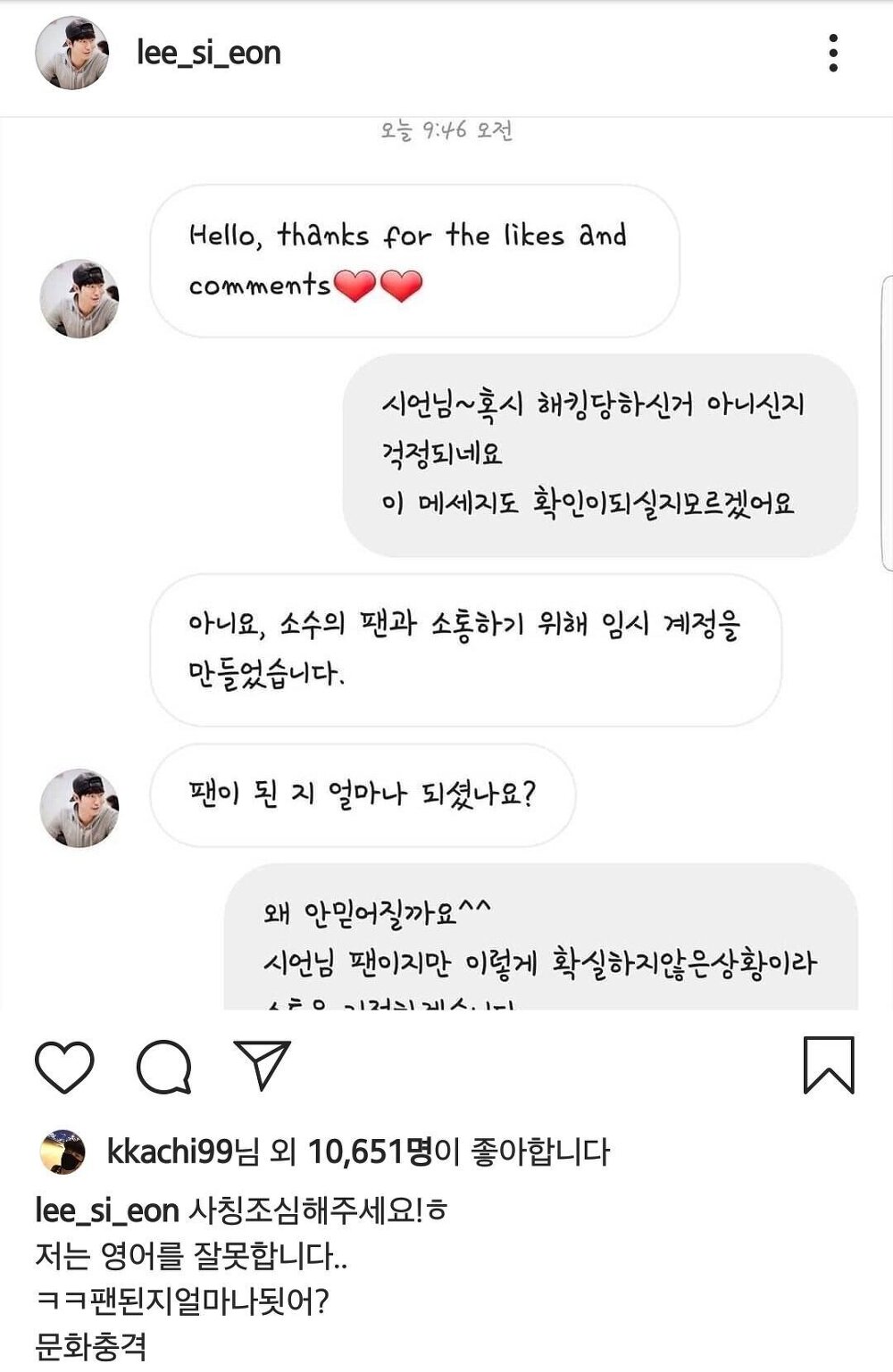 이시언, 사칭 계정 주의 당부 "저 한국말 잘 합니다."