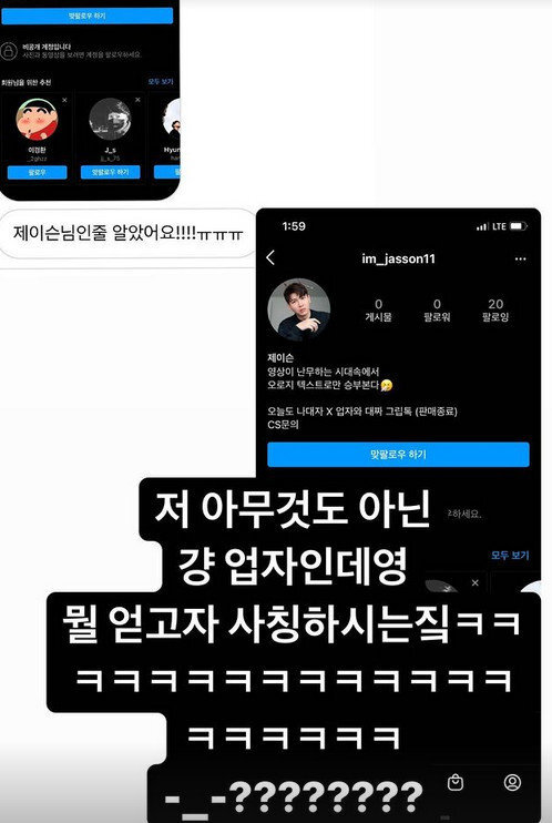 제이쓴, 사칭 계정에 일침