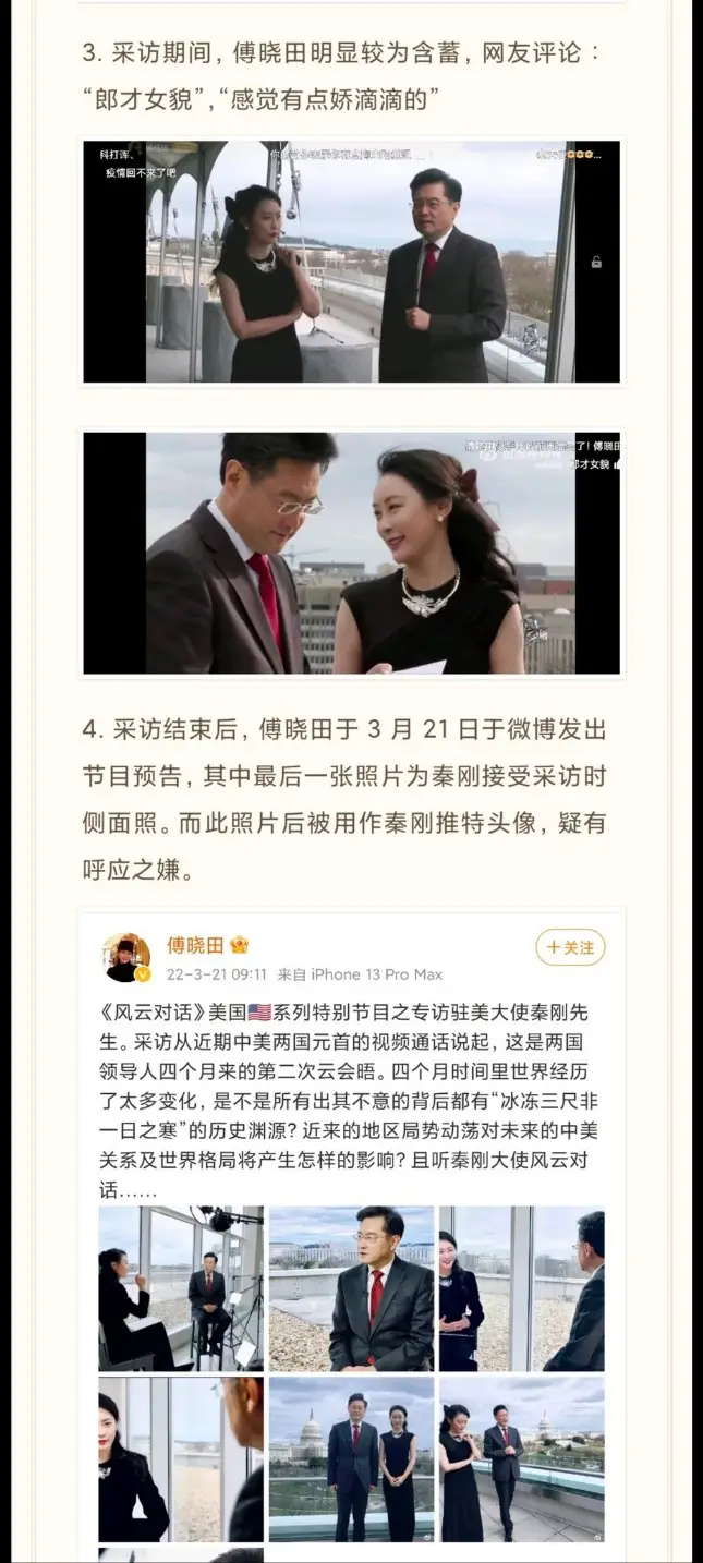 주로 대만의 소셜 미디어 플랫폼을 중심으로 다양한 소문에 따르면 친강과 홍콩 봉황 위성 TV의 여성 아나운서인 푸 샤오톈이 혼외정사에 연루되었을 수 있습니다. 올해 초 푸샤오티엔은 자신의 웨이보 계정에 갓난아기 사진을 올렸지만 아이의 아버지는 밝히지 않아 네티즌들의 궁금증을 자아냈다.