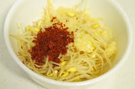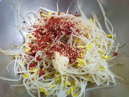 - 콩나물과 양념 섞기: 식힌 콩나물에 양념을 골고루 섞어주세요. 콩나물이 양념을 잘 흡수하도록 부드럽게 미물어 주세요.